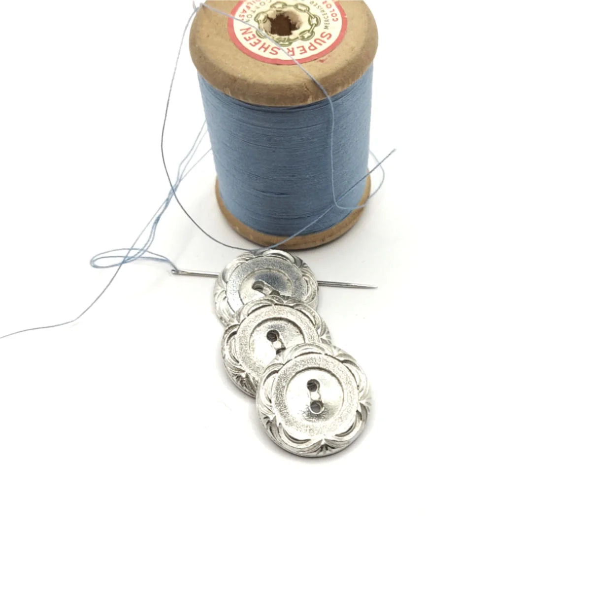 Picture it, rural Noval Scotia, 1954 and Grandma's sister in the Valley is ditching a gorgeous dress that had smaller buttons on the cuff as well as the matching larger buttons on it... the dress could be remade into something for her young daughter but there were too many buttons for a child's dress so into the tin with the extras.
