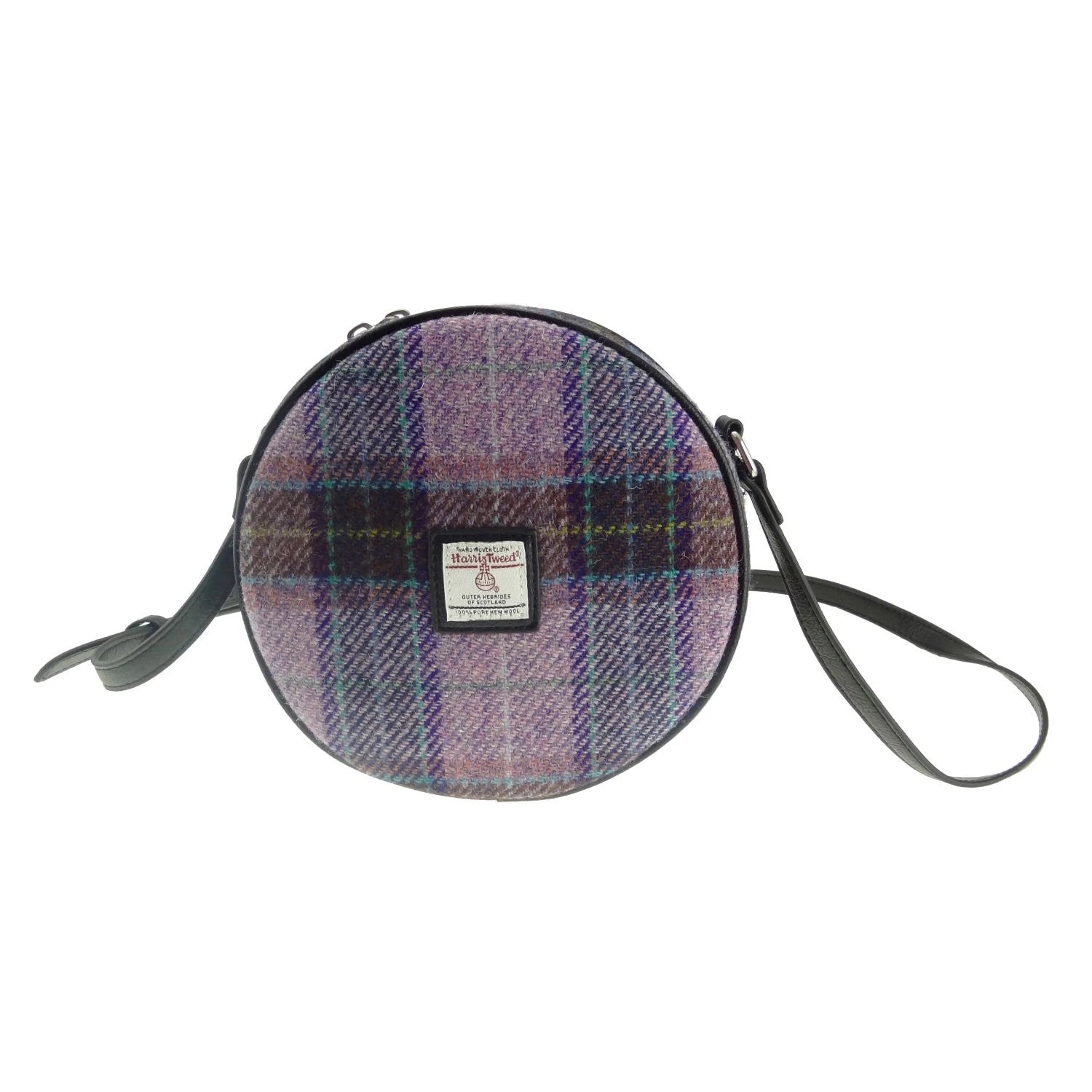 Ladies Harris Tweed compact handbag with long adjustable shoulder strap. PU strap and trim. Harris Tweed Certification Trademark on the front. Inside the bag is fully lined with mobile pocket.
