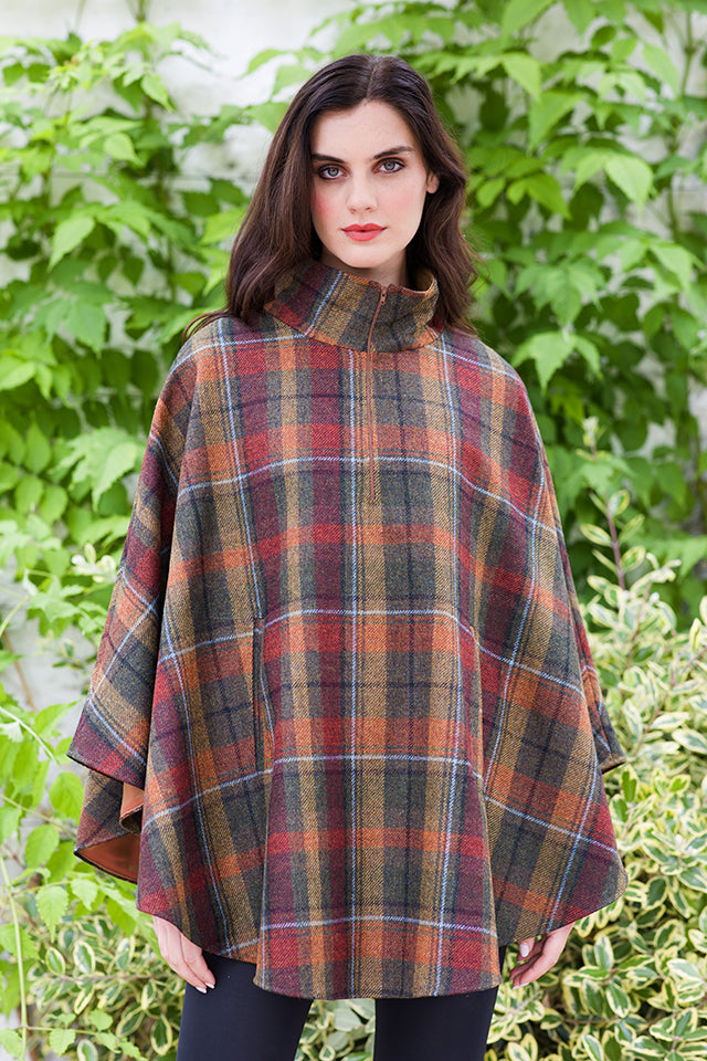 “Our classic half-zip style Poncho is made from 100% Wool and is one size fits all. It features a cowl neck and is lined with satin. It is practically elegant and lightweight making it the ideal substitute for a coat in milder weather.”