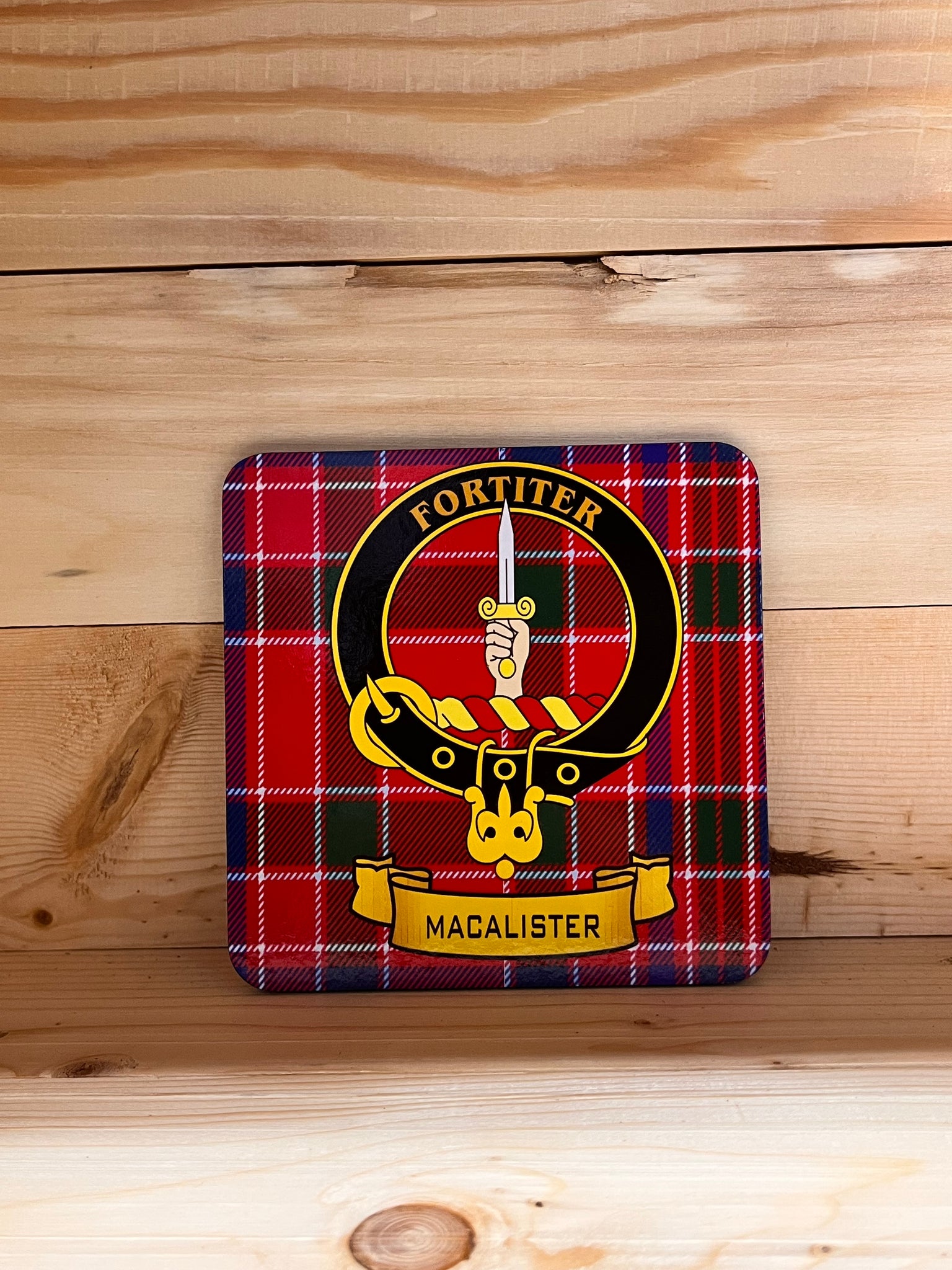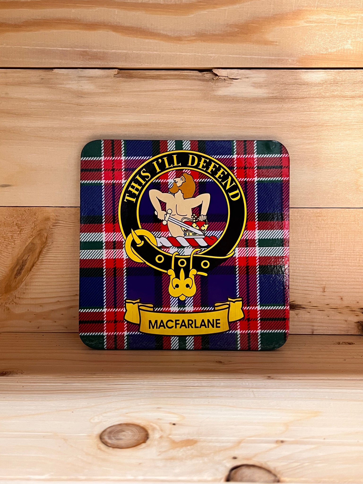 Sport your family tartan and crest with pride with these coasters. The perfect gift.